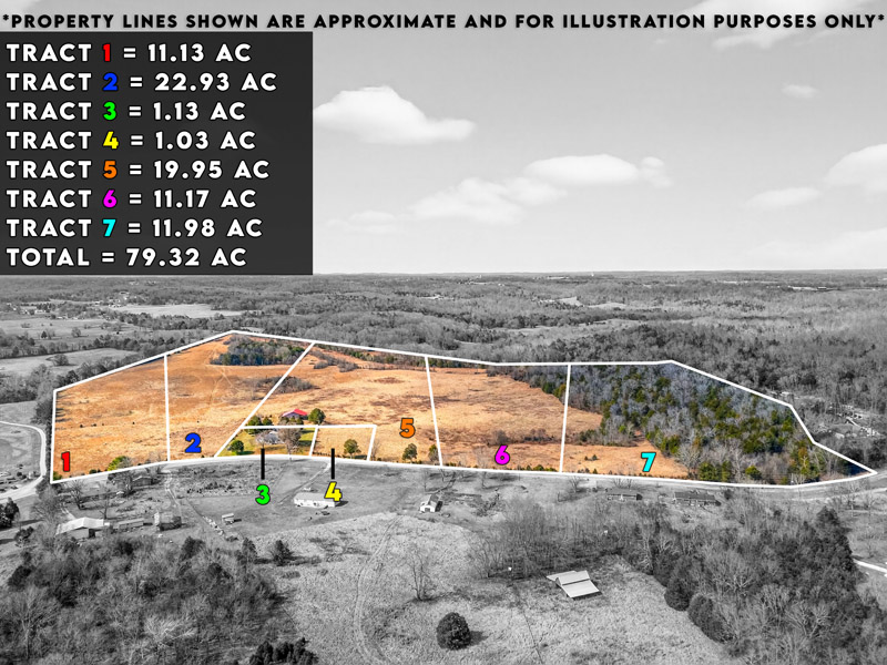79.32 acres in 7 Tracts, 591 Penns Chapel Road (the Estate of Randle Pruett), Bowling Green, KY 42101